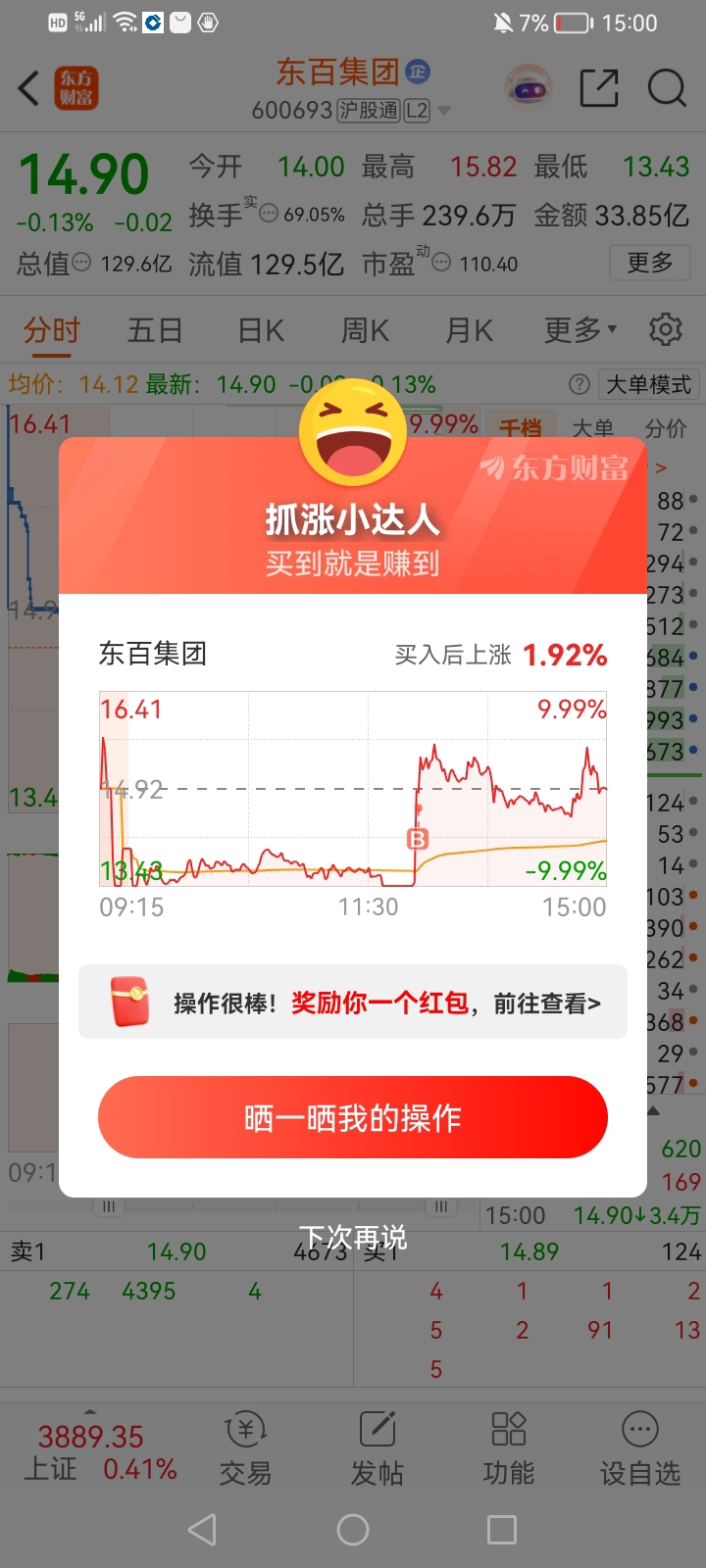 割了东易去追东百集团了,跌停板被大佬一秒吃了16.8万手筹码,下周一怎么看?