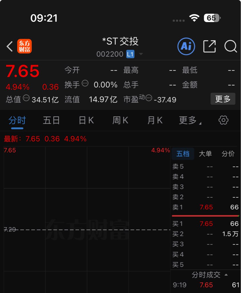 $*ST东易(SZ002713)$ $*ST亚太(SZ000691)$ $ST中迪(SZ000609)$ 交投第二个实达