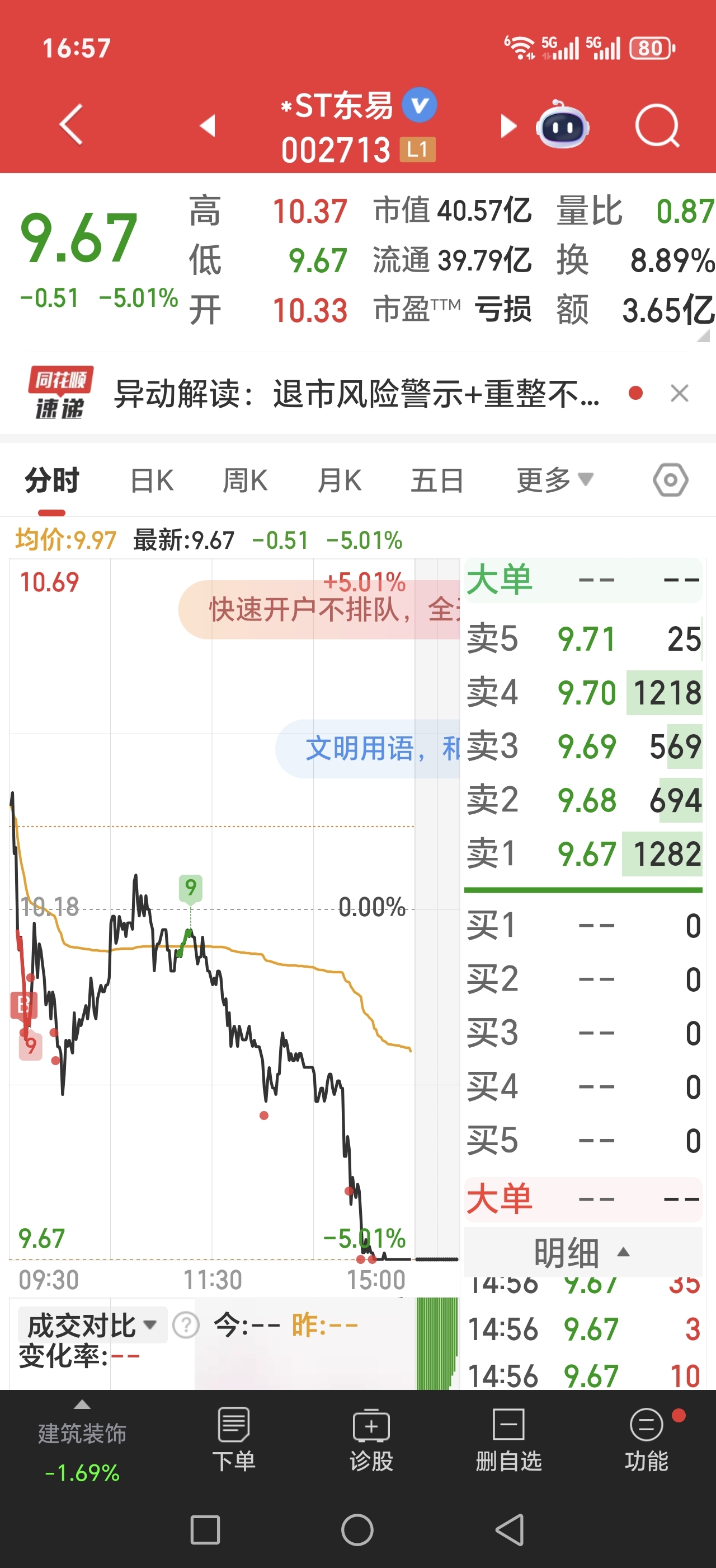 $*ST东易(SZ002713)$ 每次以为企稳了就这样子