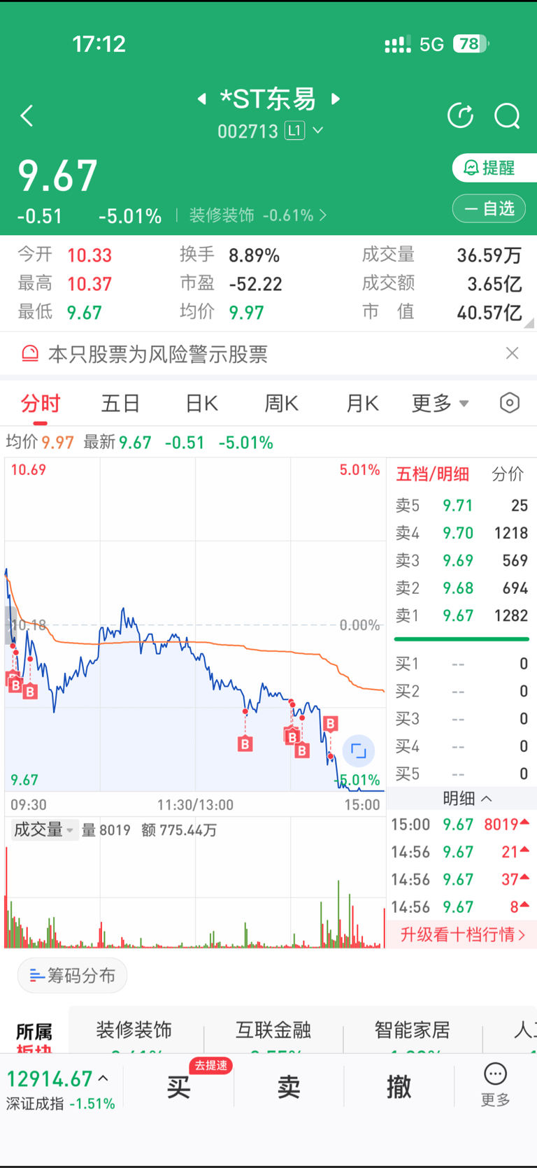 $*ST东易(SZ002713)$ 看到贴吧里有些人歇斯底里的发言,我越来越兴奋了,嘿嘿。这波除权后要吃肉了,吃大肉。其实逻辑丝毫没变,大家想想你们心态变了而已,被车有些黑子误导了,拿住必有丰厚回报加油