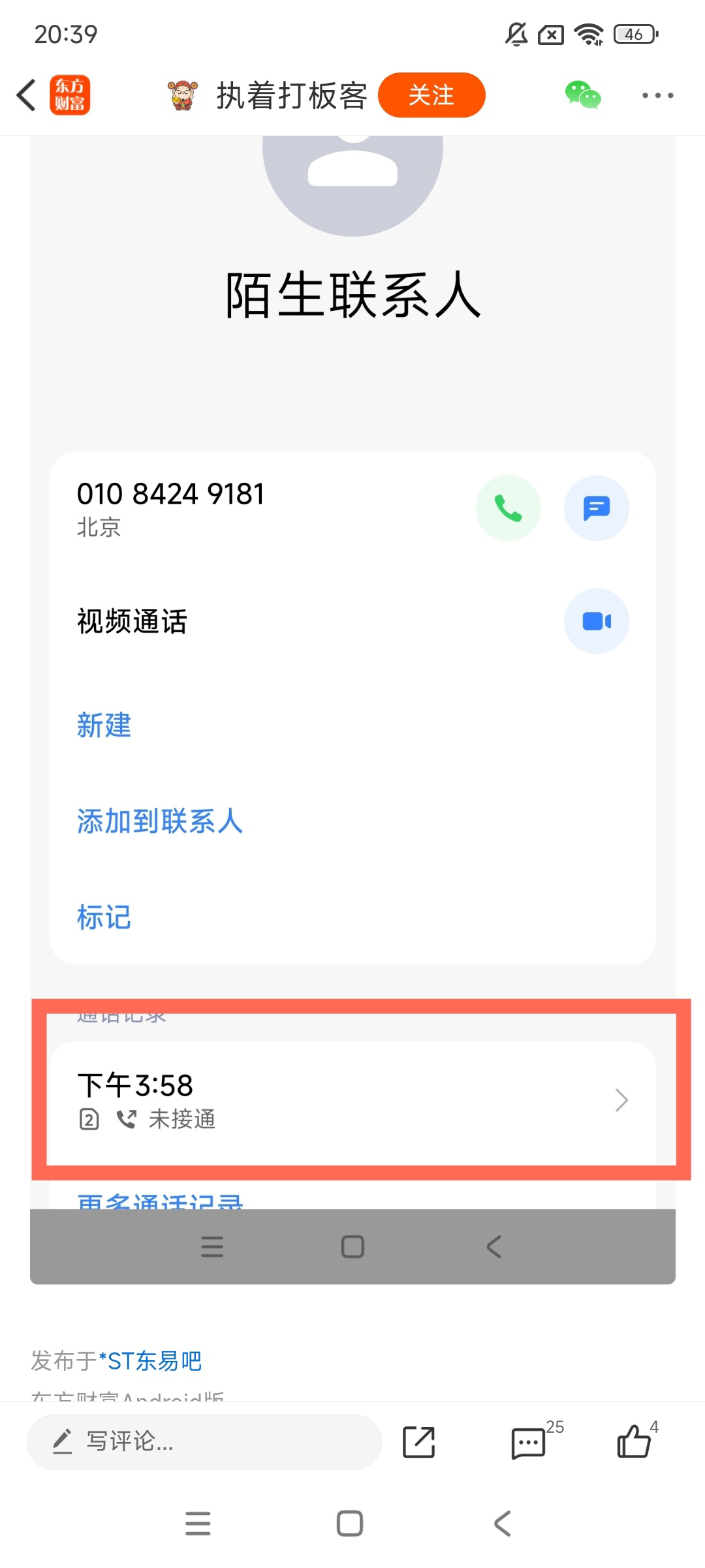 $*ST东易(SZ002713)$ 这拿个没打通的通话记录在这吓唬人,大家散了吧。图里面可以看到他除了没打通的一次拨号,没有其他通话记录了。要不要来解释下@执着打板客