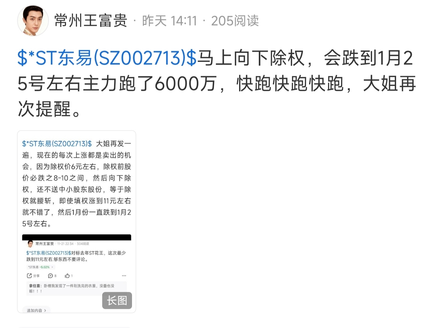 $*ST东易(SZ002713)$ 昨天大姐一再提醒让你们卖出,还有啥子不听话,他们真是没赚钱的命。