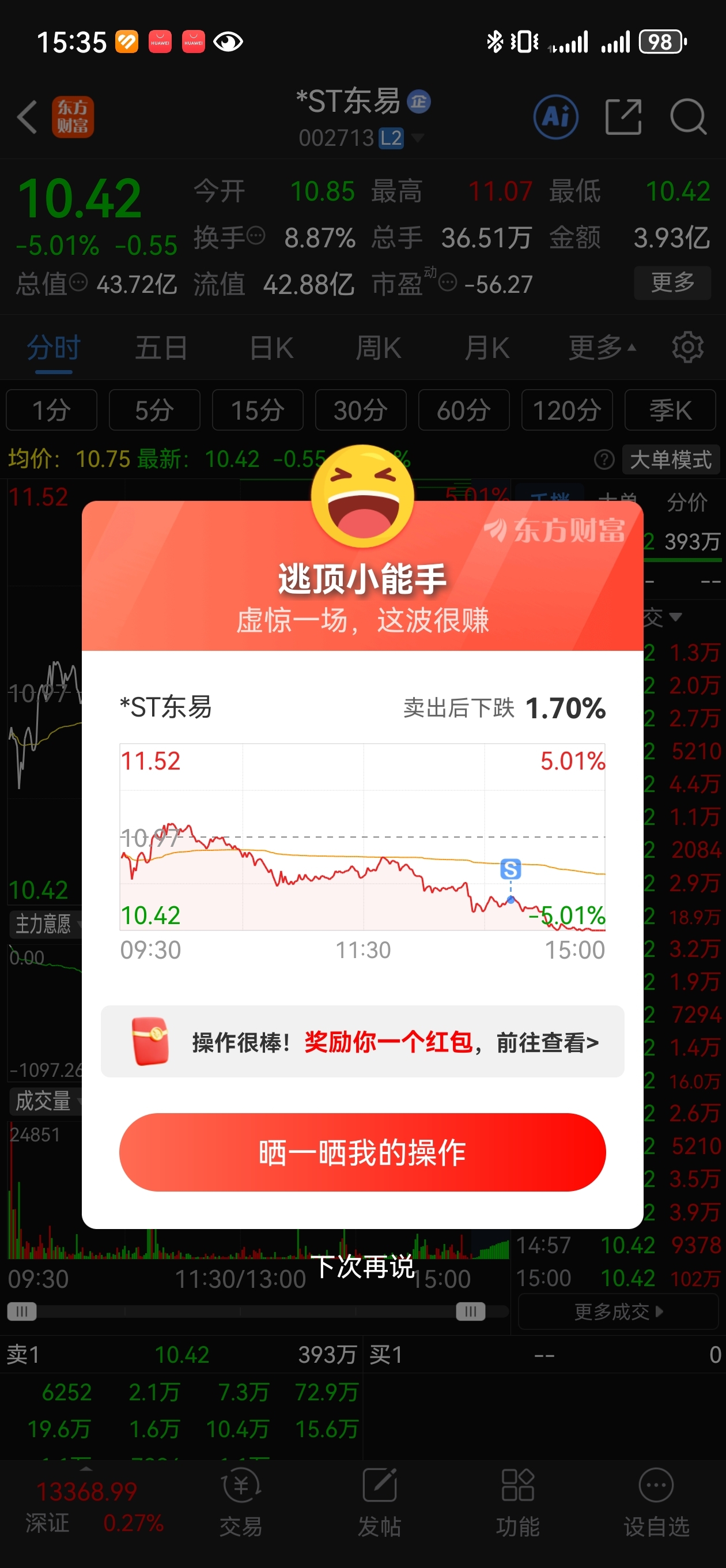 $*ST东易(SZ002713)$ 算了不参加除权和填权,小赚走了!买入可川科技!