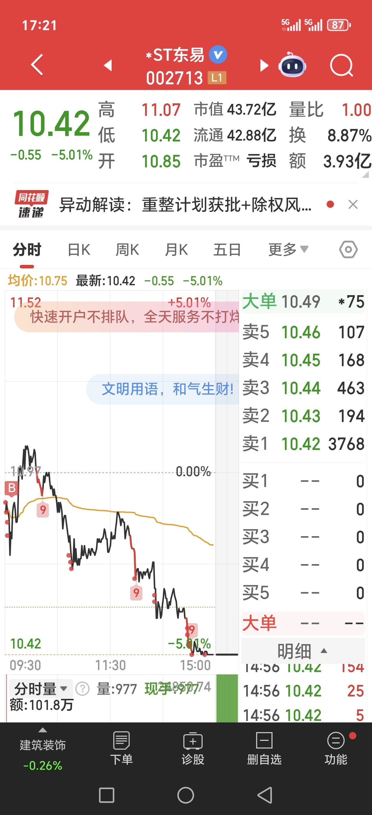 $*ST东易(SZ002713)$ 只买不卖,干就完了