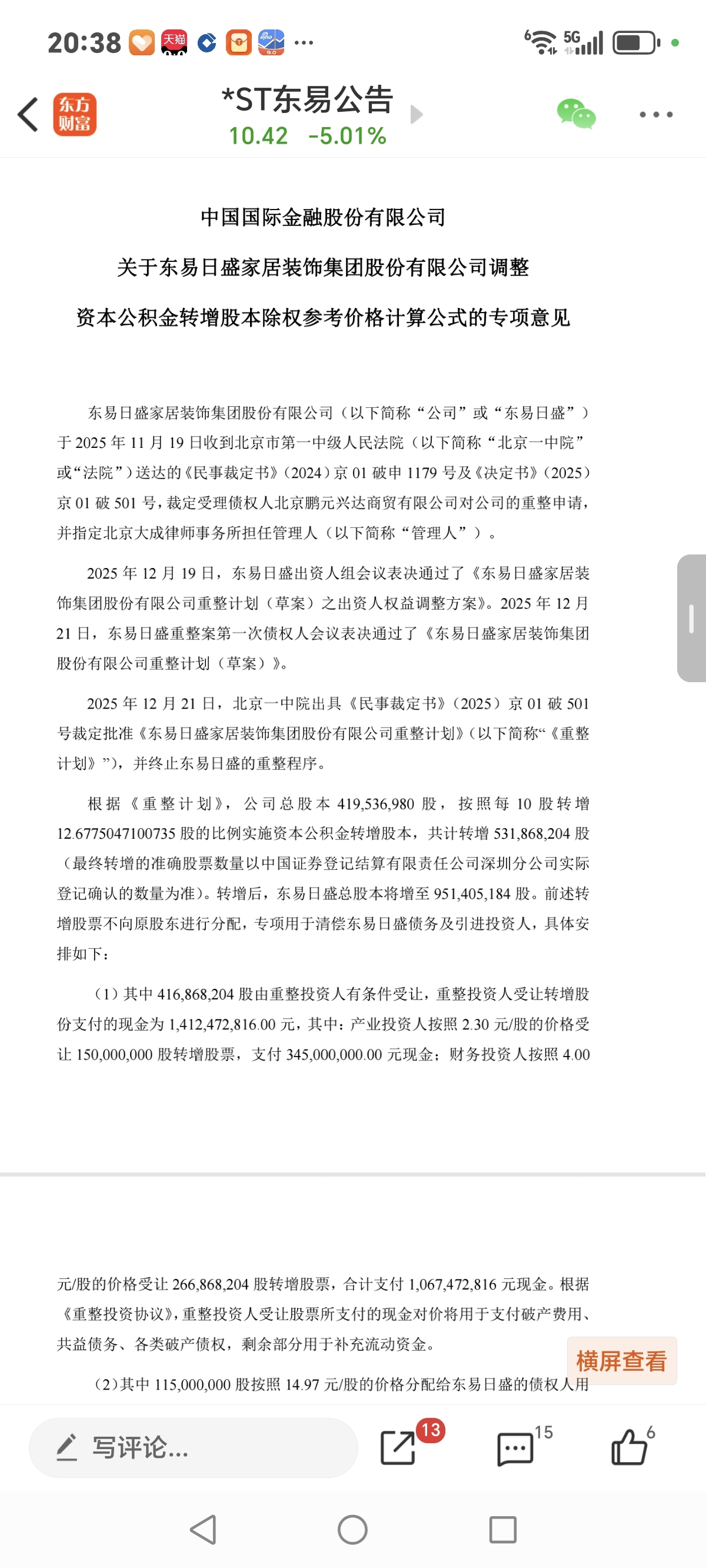 $*ST东易(SZ002713)$ 东易由中银国际发文重正获批,正规文件:图示: