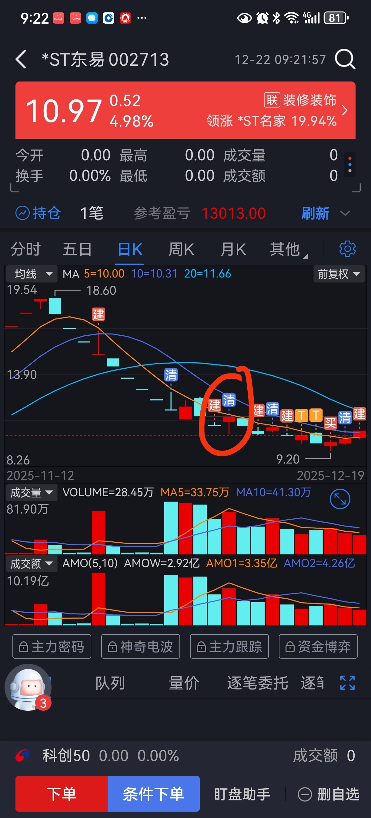 $*ST东易(SZ002713)$ 预测下明天涨跌:1.东易长期看涨。2.此次下跌因为重整压价,怕价格过高,法院通不过,现在已通过。3.其实价格越高投方获得利润更大。4.那么排除其它因素,明天可以抢权了。5.因为之前开板,主力筹码不够,希望继续打压吸筹。已经横盘10天,剩下的都等着除权填权。做T的也不做了。恐慌的小白也不多了。