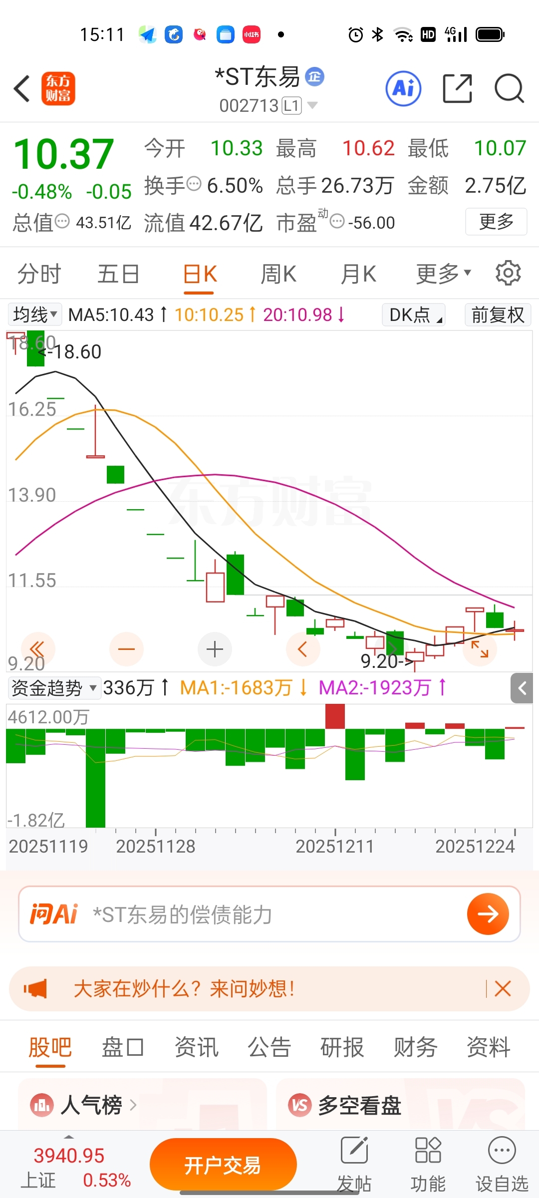 $*ST东易(SZ002713)$ 小成本诱多大单出货,