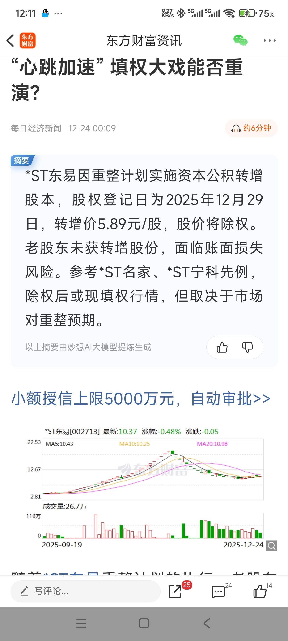 $*ST东易(SZ002713)$ 请问托们,怎么解释5.89元的除权价,涨回10.37需要多久