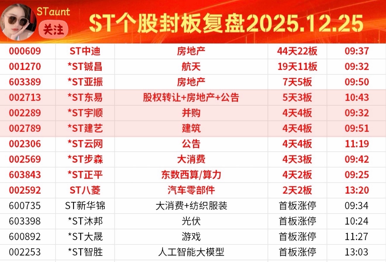 ST个股封板复盘2组