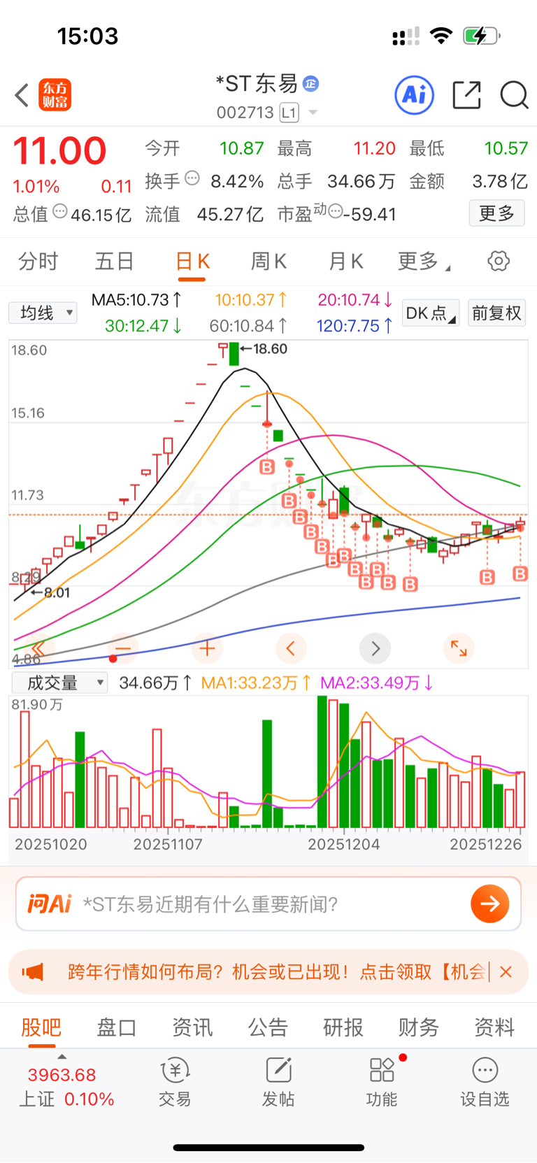 $*ST东易(SZ002713)$ 除权价8.1见,需要六个板填权,多出的就是溢价,大家猜下能有几个板