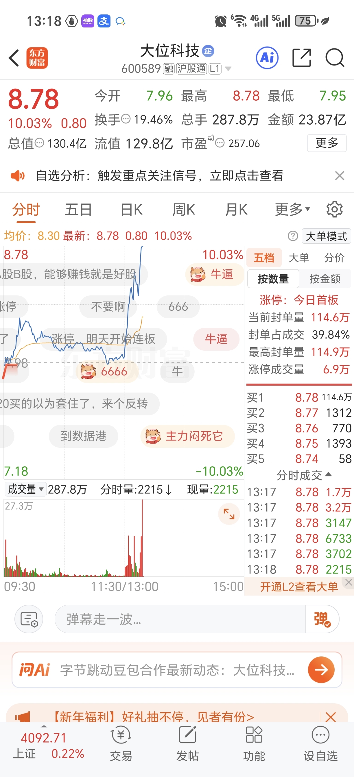 看看张建华的另一只算力股,这封板,等东易上主板后简直不敢想