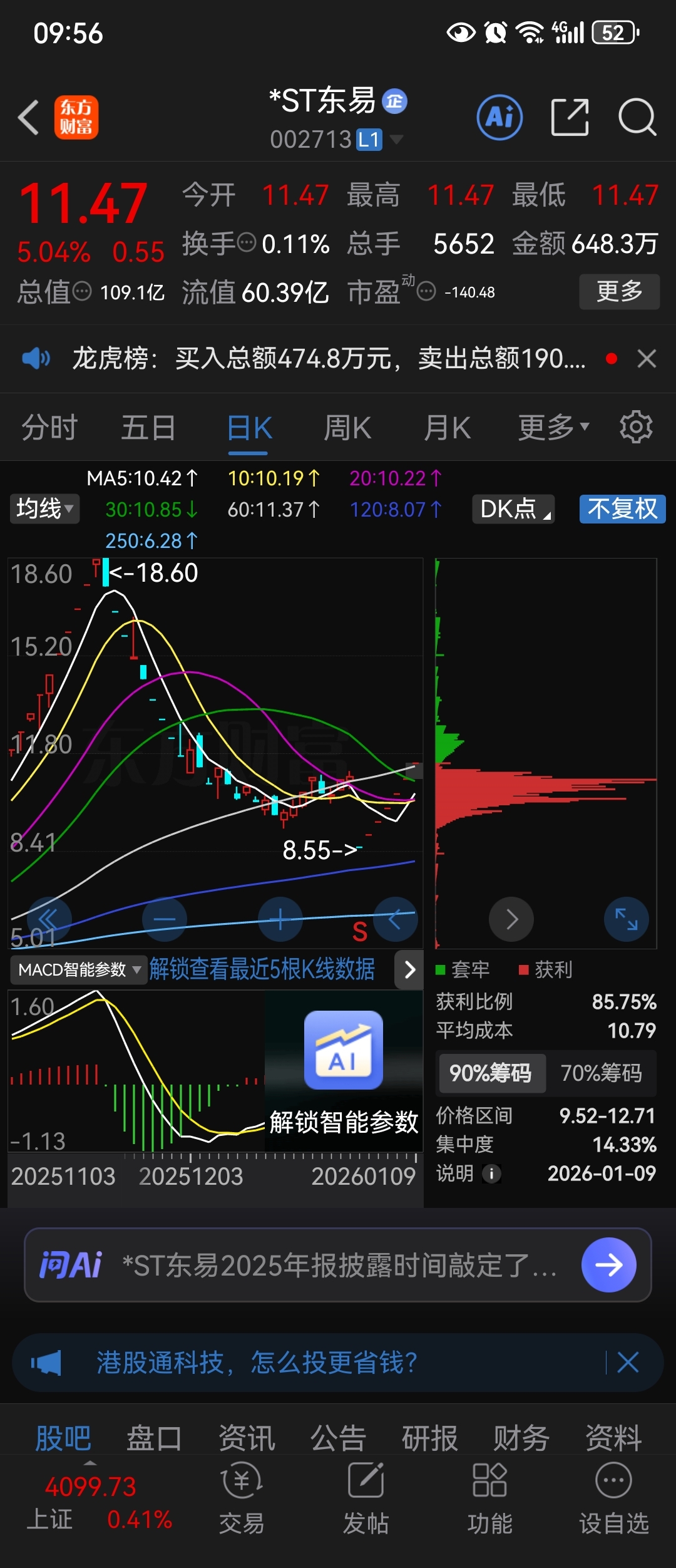 $*ST东易(SZ002713)$ 上方套牢盘大概八千万左右,小意思