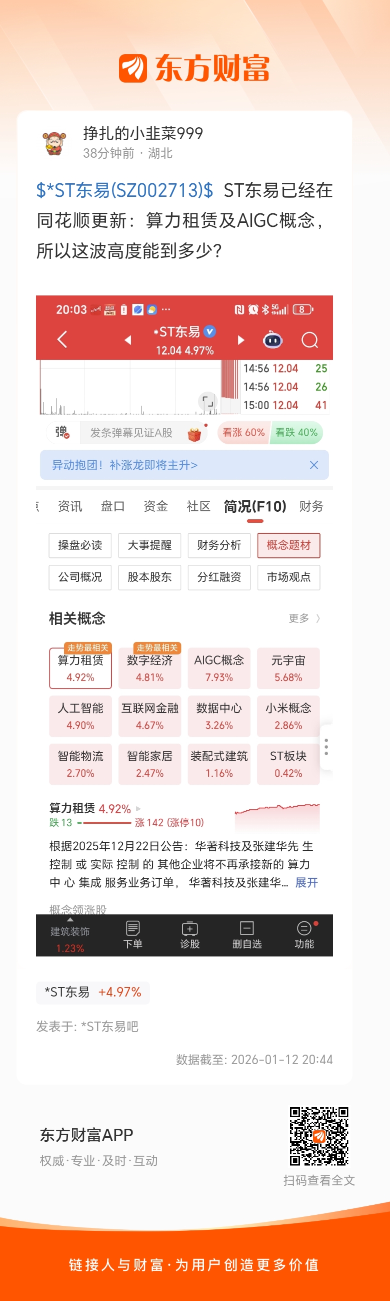 $*ST东易(SZ002713)$  ST东易已经在同花顺更新:算力租赁及AIGC概念,所以这波高度能到多少?