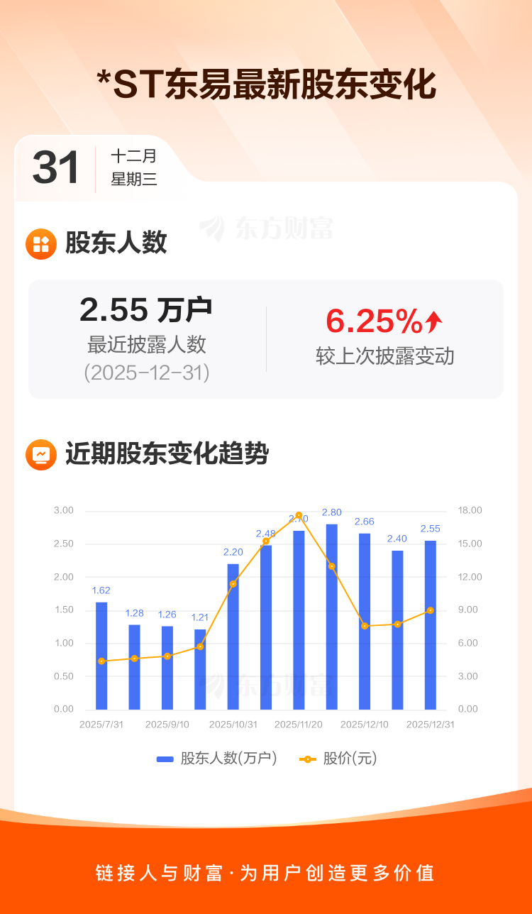 *ST东易:截至12月31日最新股东户数2.55万户,较上期增加6.25%