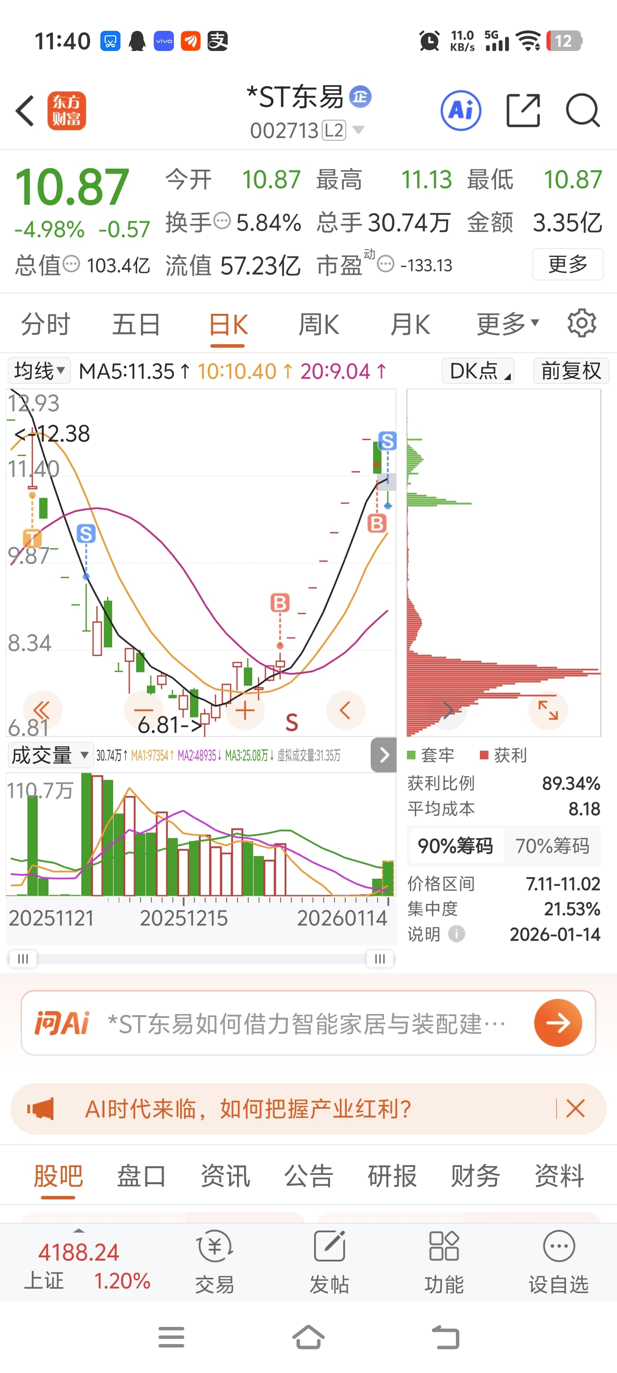 $*ST东易(SZ002713)$ 有多少人跟我一样填权是赔钱走的