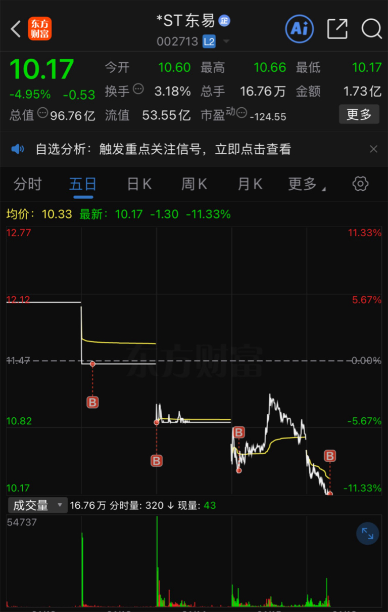 $*ST东易(SZ002713)$ 不知道底在哪里,只要来一个跌停,那就加点