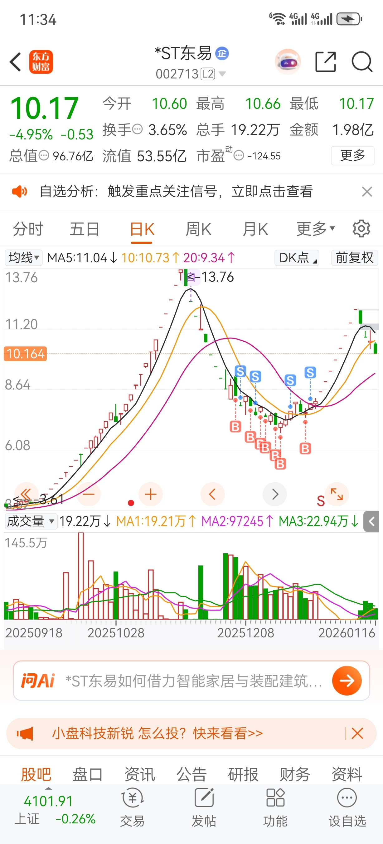 $*ST东易(SZ002713)$ 打回原形了哦不是说东易很牛吗?