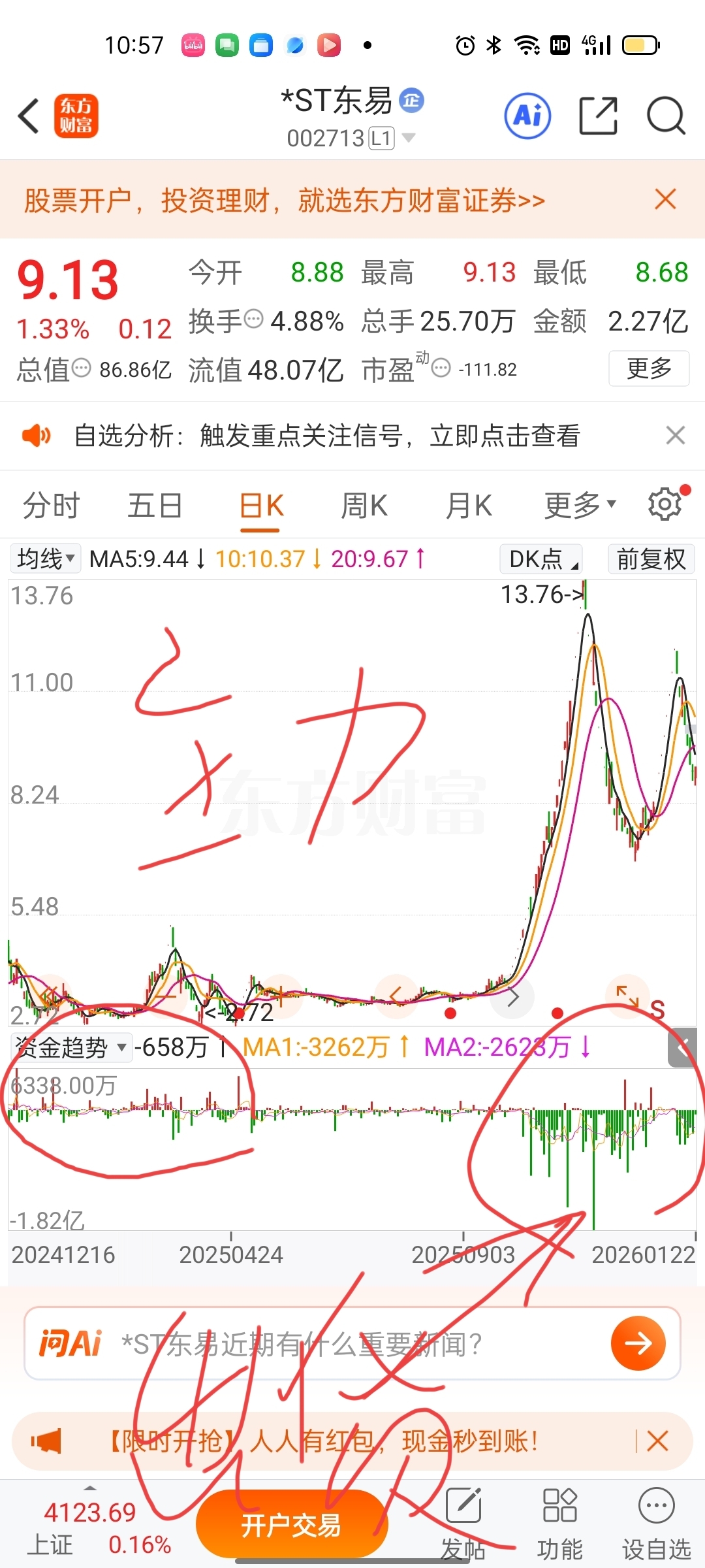 $*ST东易(SZ002713)$ 主力5块建仓,大M双顶出货