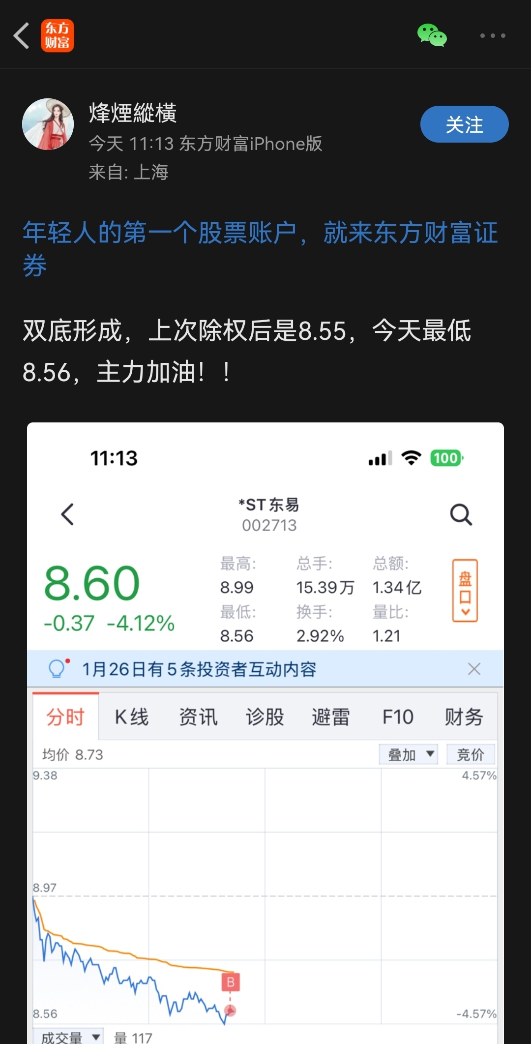 温馨提示: 1.根据《证券法》规定,禁止编造、传播虚假信息或者误导性信息,扰乱证券市场;2.用户在本社区发表的所有资料、言论等仅代表个人观点,与本网站立场无关,不对您构成任何投资建议。用户应基于自己的独立判断,自行决定证券投资并承担相应风险。《东方财富社区管理规定》