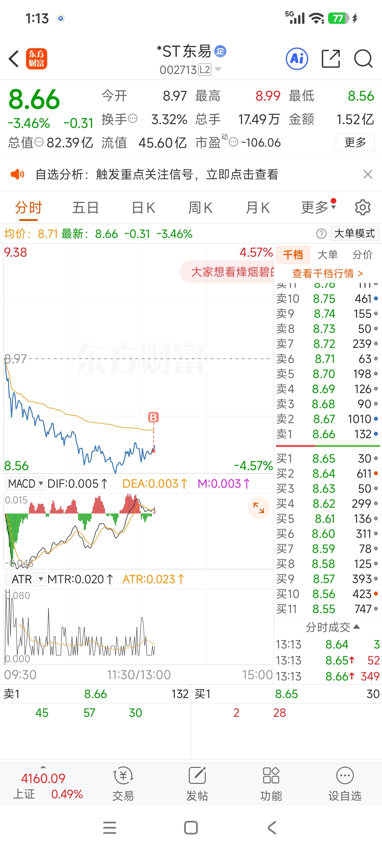 $*ST东易(SZ002713)$ 今天强势插入,只是博一下超跌反弹