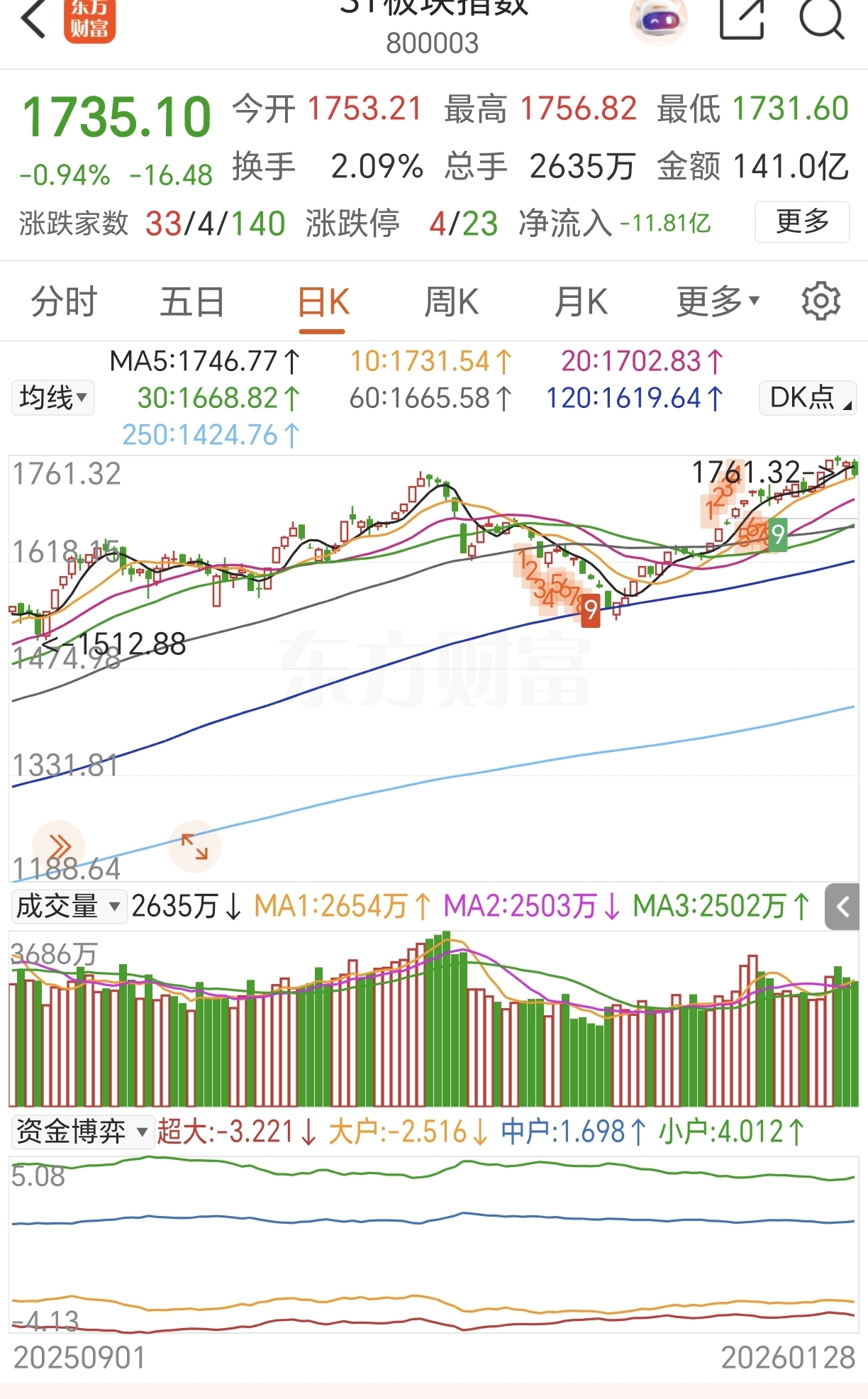 东易昨天上冲后就无力。看看板块指数这个图,股票上涨它不跟,如果下杀,你会期待它逆