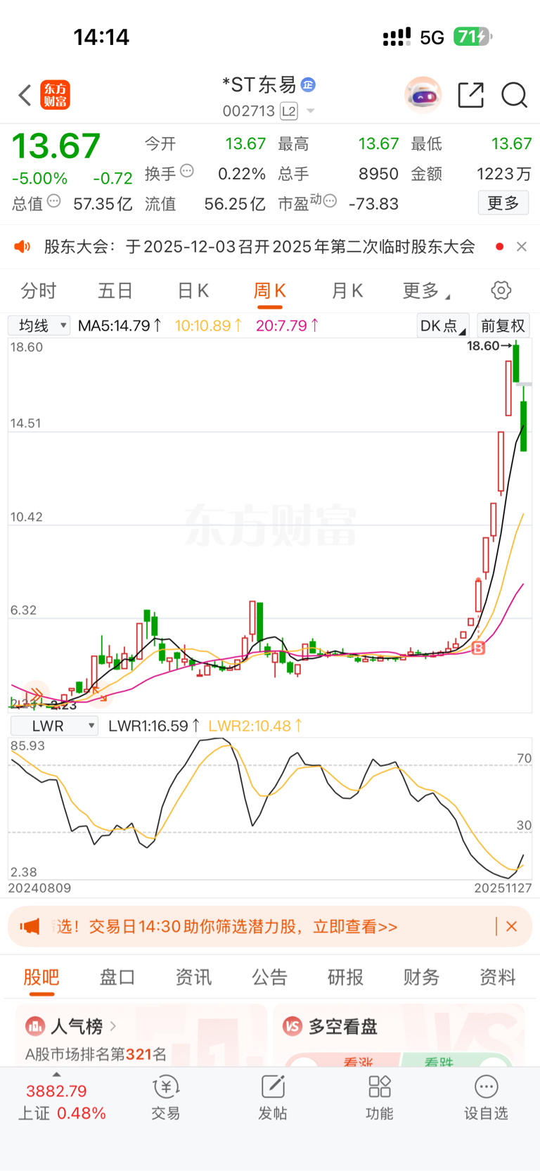 $*ST东易(SZ002713)$ 还有河北IP冒充上海烽烟的,可见其居心不良,鼠目寸光,河北烽烟也好,上海烽烟也罢!评论区能左右你自己内心的,就早点割肉离场,免受煎熬!