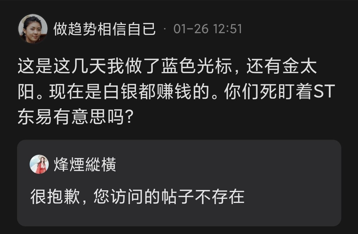 温馨提示: 1.根据《证券法》规定,禁止编造、传播虚假信息或者误导性信息,扰乱证券市场;2.用户在本社区发表的所有资料、言论等仅代表个人观点,与本网站立场无关,不对您构成任何投资建议。用户应基于自己的独立判断,自行决定证券投资并承担相应风险。《东方财富社区管理规定》