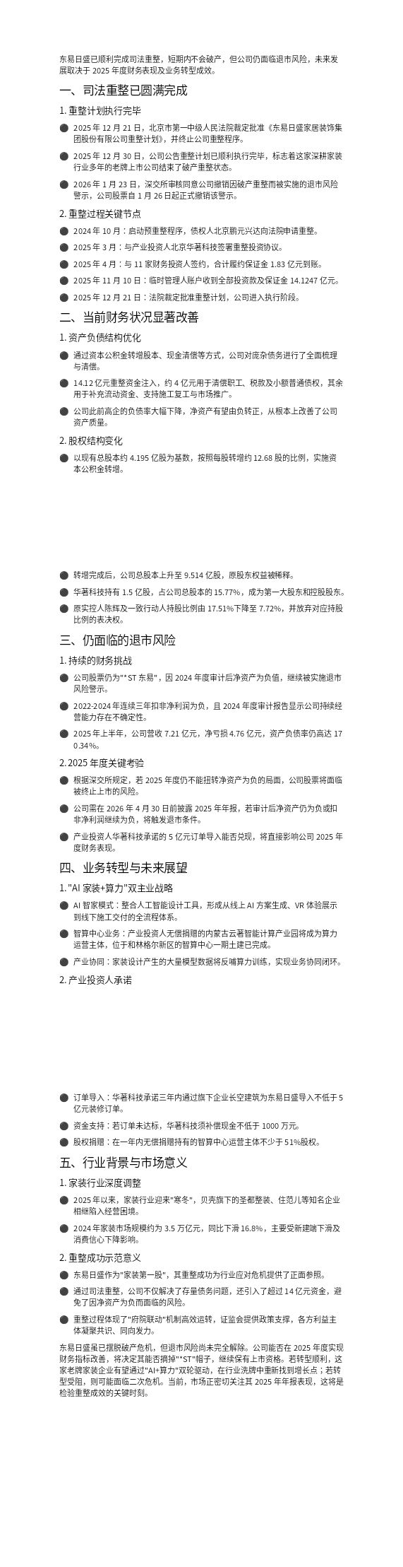 $*ST东易(SZ002713)$ 很多东易的家人们亏的晚上睡不着,大雕帮你们用AI搜索总结了2点大家最关切的问题。没事可以看看,重申,大雕不看多也不看空,希望所有财友都能赚到钱。纯个人观点,不喜勿喷