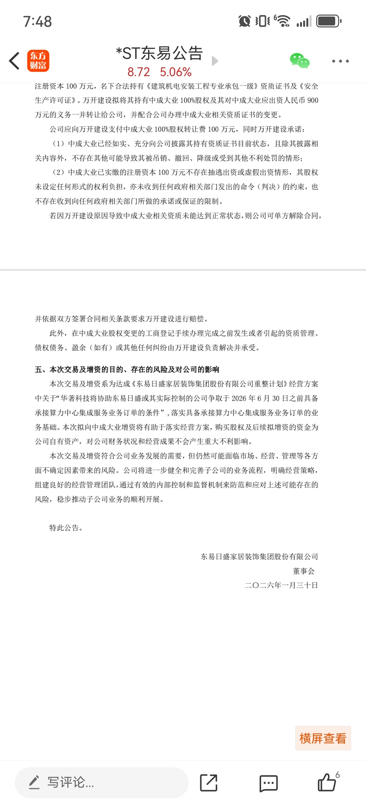 $*ST东易(SZ002713)$ 意外惊喜