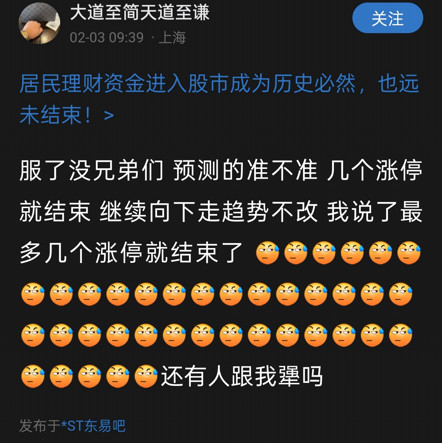 温馨提示: 1.根据《证券法》规定,禁止编造、传播虚假信息或者误导性信息,扰乱证券市场;2.用户在本社区发表的所有资料、言论等仅代表个人观点,与本网站立场无关,不对您构成任何投资建议。用户应基于自己的独立判断,自行决定证券投资并承担相应风险。《东方财富社区管理规定》