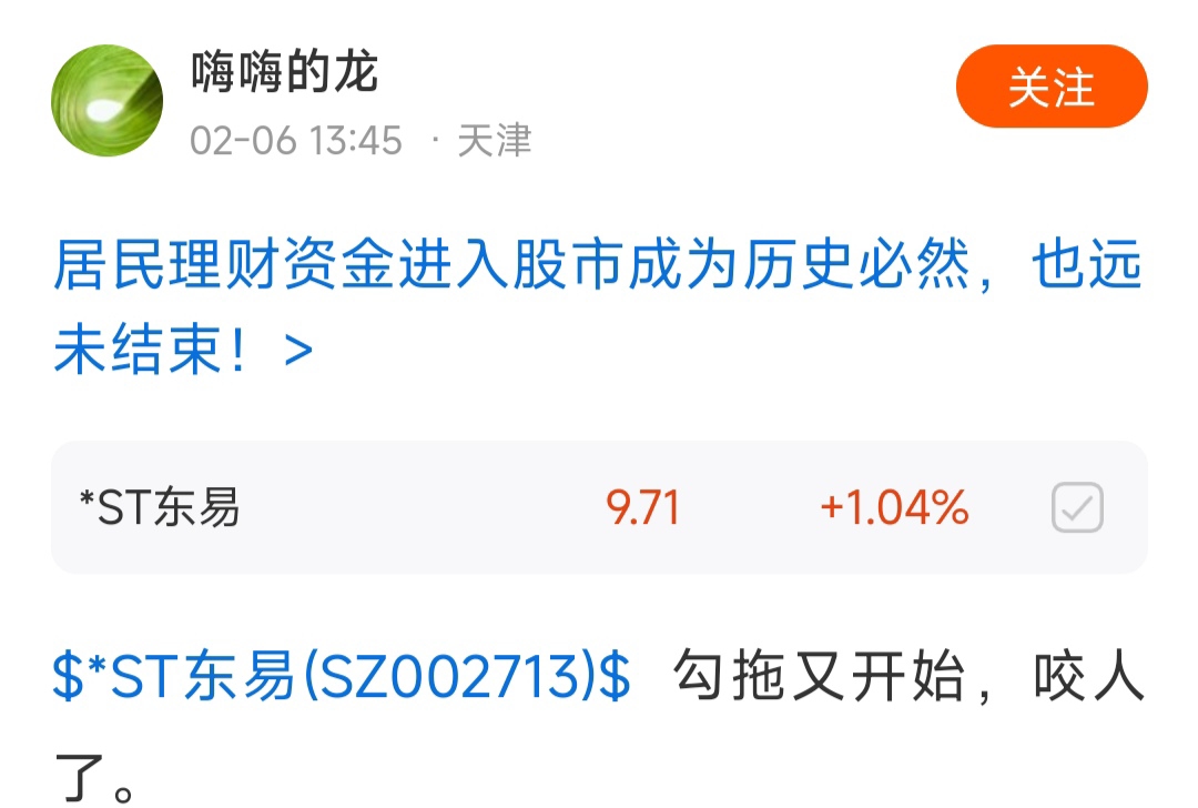 $*ST东易(SZ002713)$ 空苟的戾气很重,整天对着人汪汪汪,没人时候对着空气汪汪汪,你说两句他反咬一口,还有说话跟放p一样的,昨天说了再也不来,今天又忍不住来汪汪汪,虽然没啥实质影响,但是就跟苍蝇一样恶心人