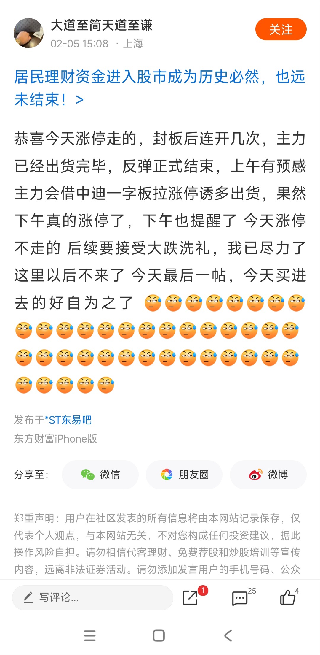 温馨提示: 1.根据《证券法》规定,禁止编造、传播虚假信息或者误导性信息,扰乱证券市场;2.用户在本社区发表的所有资料、言论等仅代表个人观点,与本网站立场无关,不对您构成任何投资建议。用户应基于自己的独立判断,自行决定证券投资并承担相应风险。《东方财富社区管理规定》