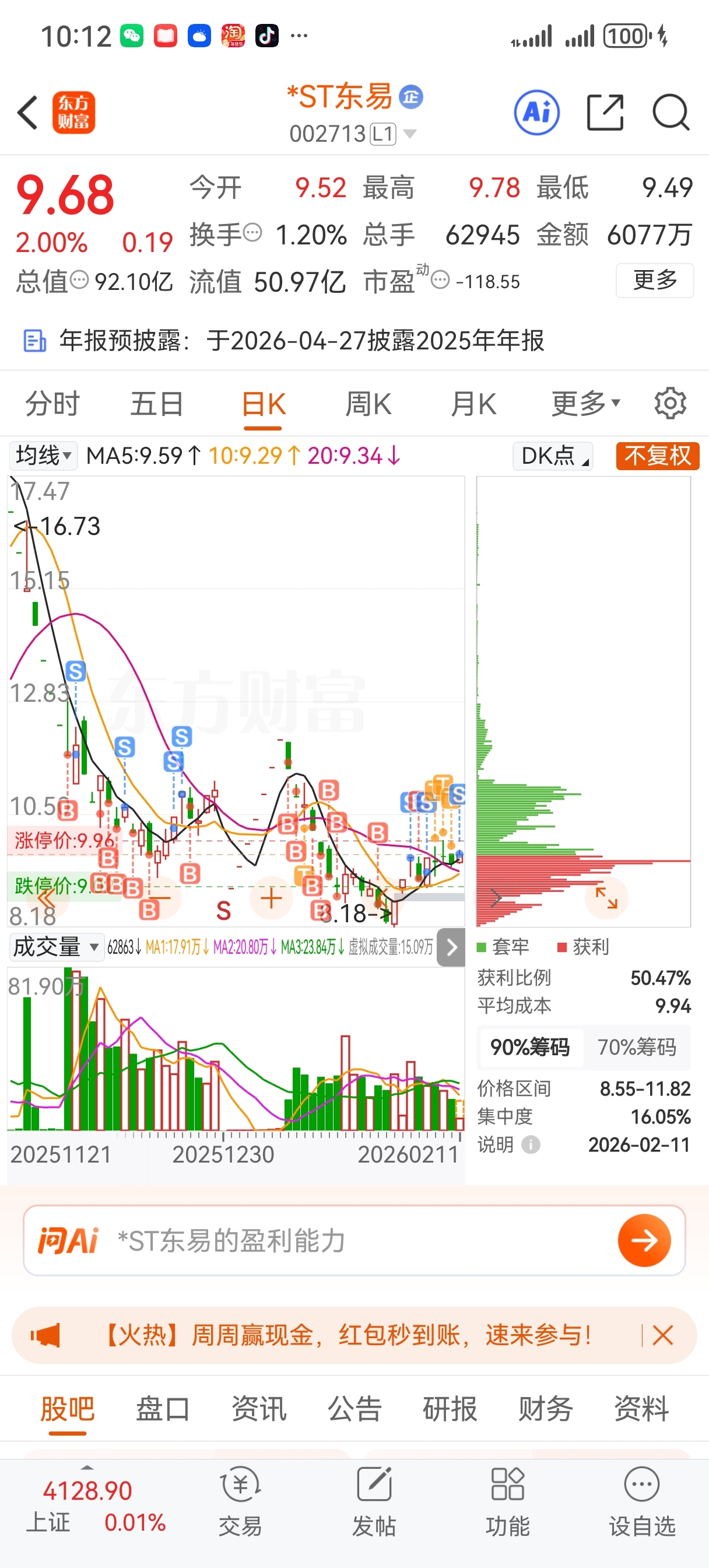 $*ST东易(SZ002713)$ 清仓走人,祝东易节节高升,坚持的发大财