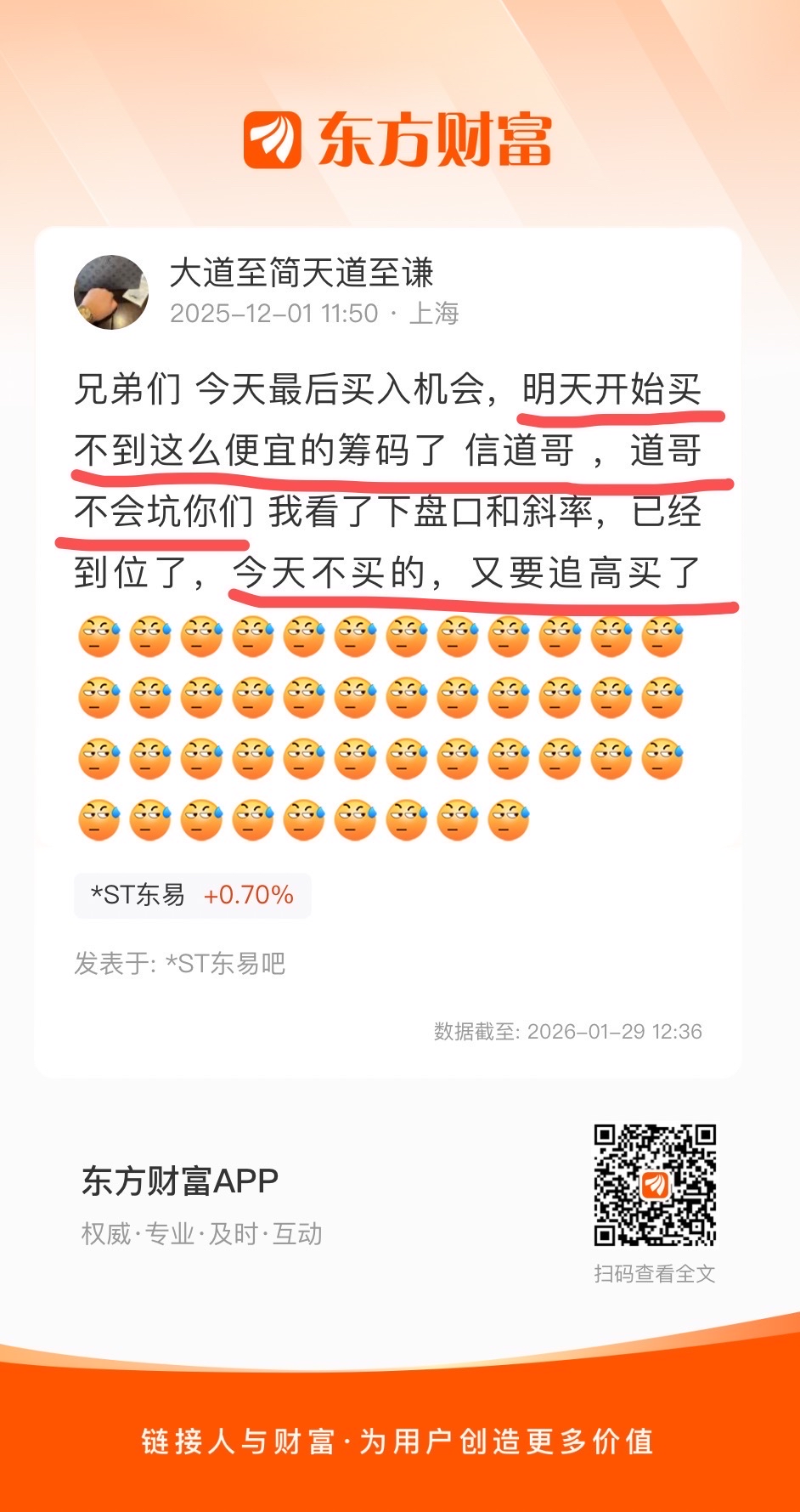 温馨提示: 1.根据《证券法》规定,禁止编造、传播虚假信息或者误导性信息,扰乱证券市场;2.用户在本社区发表的所有资料、言论等仅代表个人观点,与本网站立场无关,不对您构成任何投资建议。用户应基于自己的独立判断,自行决定证券投资并承担相应风险。《东方财富社区管理规定》