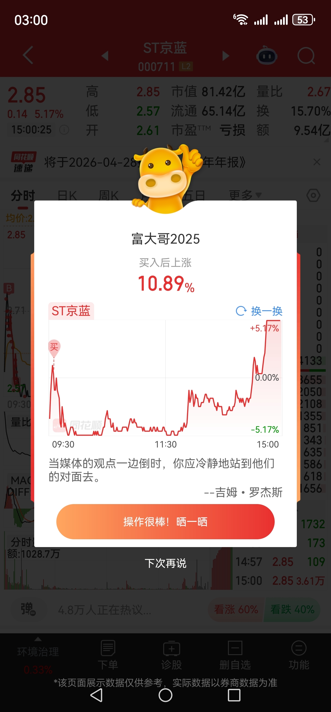 早上一个多点卖飞东易去买了京蓝,京蓝倒车接人。广西老南宁人说我菜鸡。昨天他推荐锋