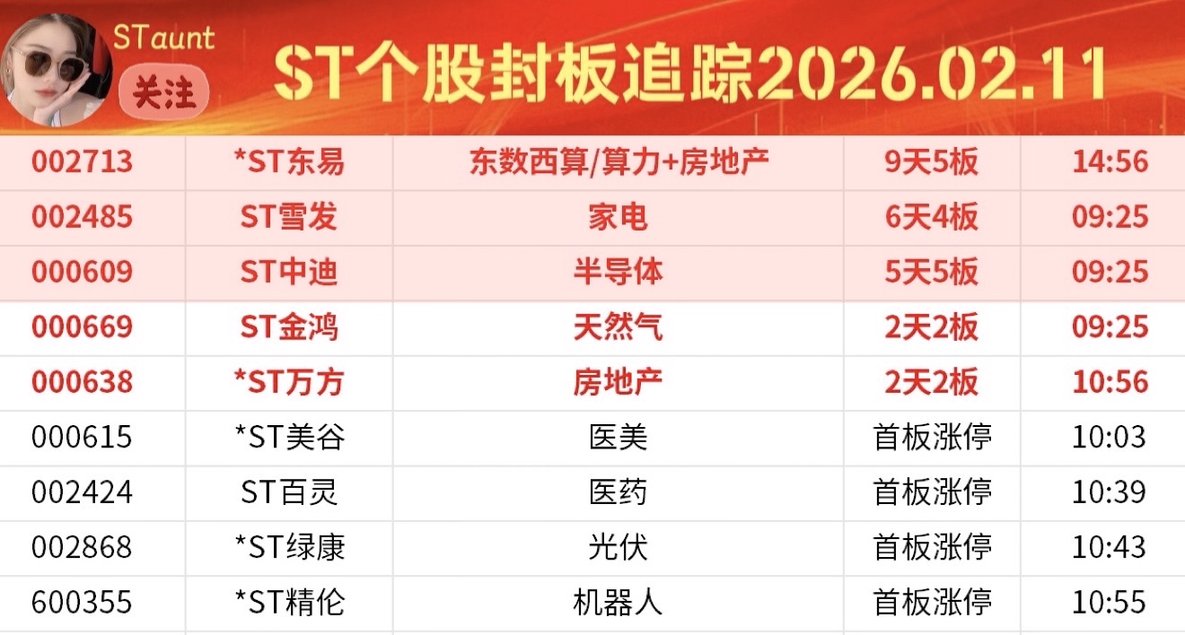 ST个股封板追踪A