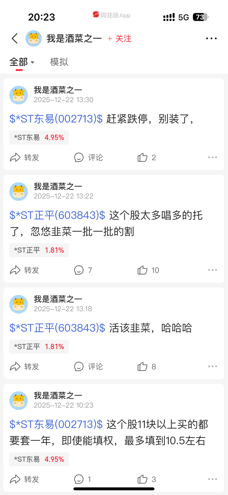 $*ST东易(SZ002713)$ @东易只值四元 既然你说要完整截图不要断章取义,那我就给你来波完整截图,让股吧吧友看看你那复杂的心路历程到底是有多癫
