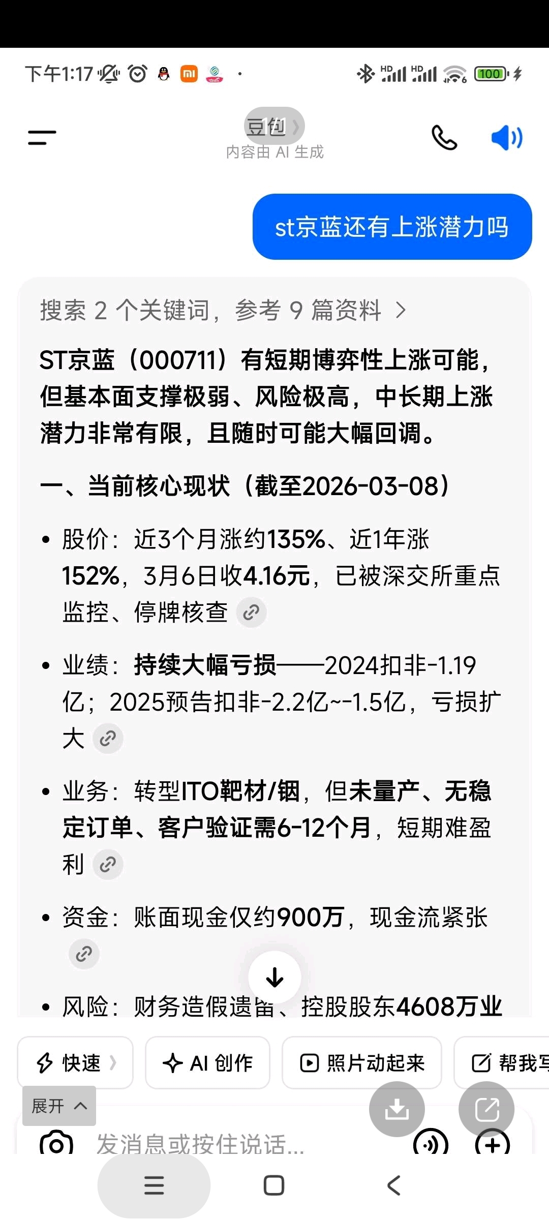 $*ST东易(SZ002713)$ $ST京蓝(SZ000711)$ 跑到东易拉人的京蓝股东,你怎么不问豆包这个?