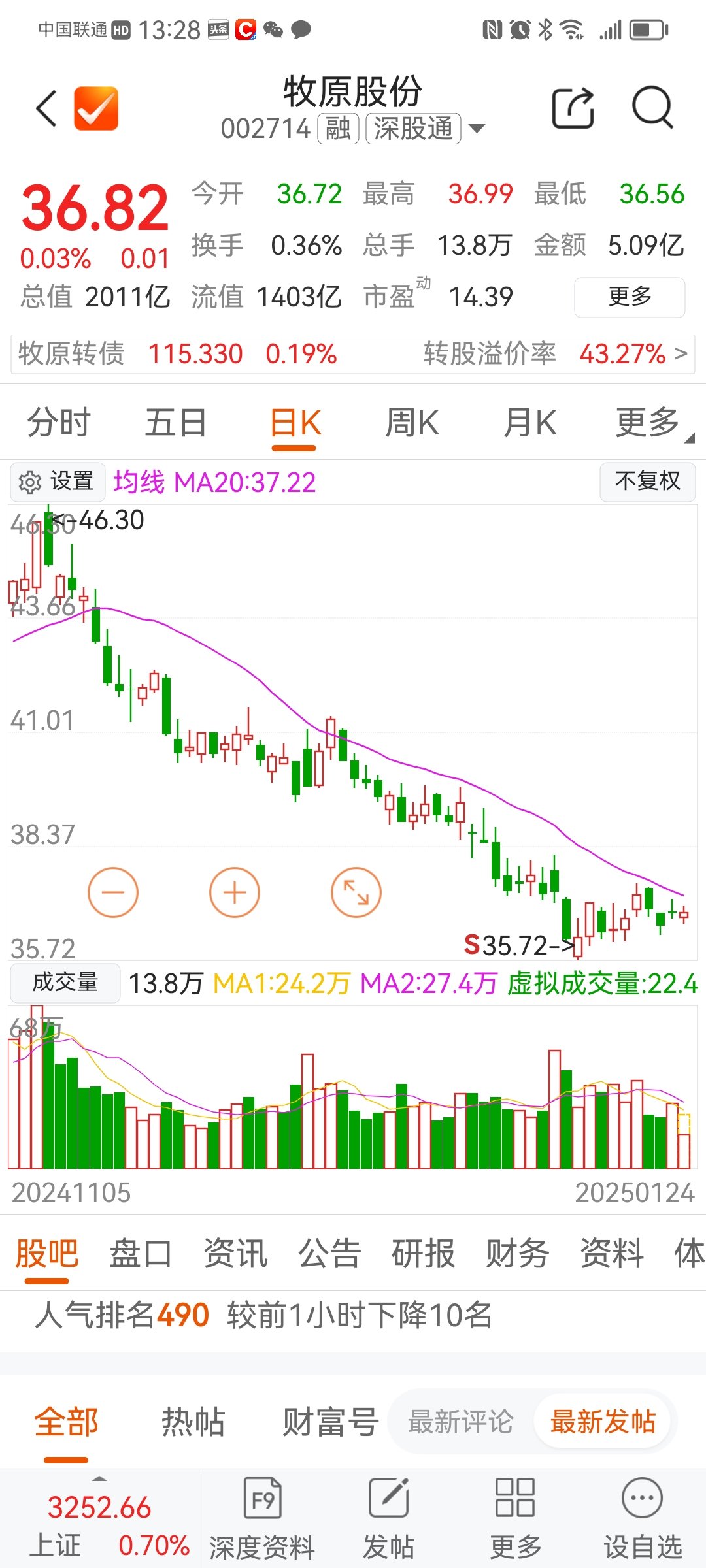 今天恒指,A50,上证,深证创业板,各大指数都大涨,整体环境不错的情况下,牧原股
