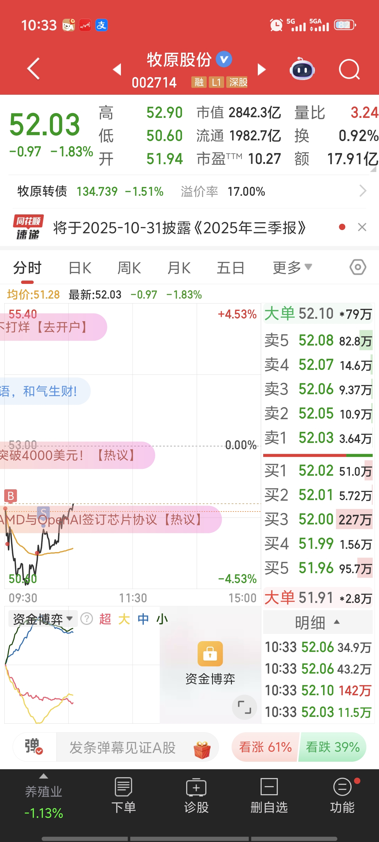 $牧原股份(SZ002714)$ 每天都有底部割肉的