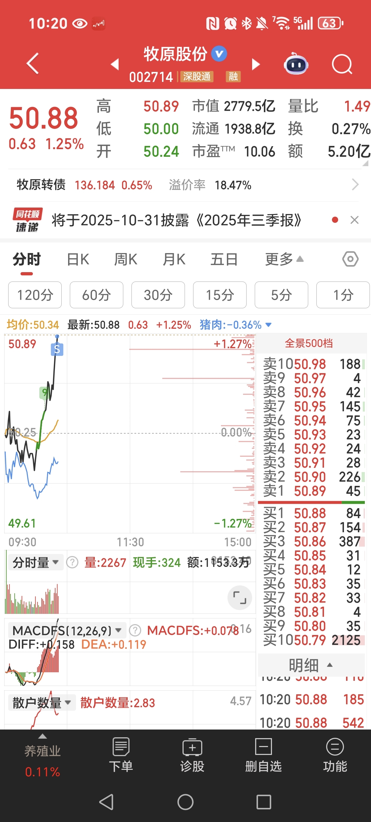 $牧原股份(SZ002714)$ 赚了不到5个点走了