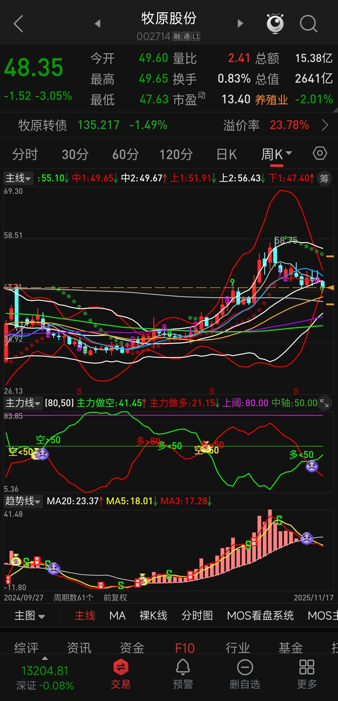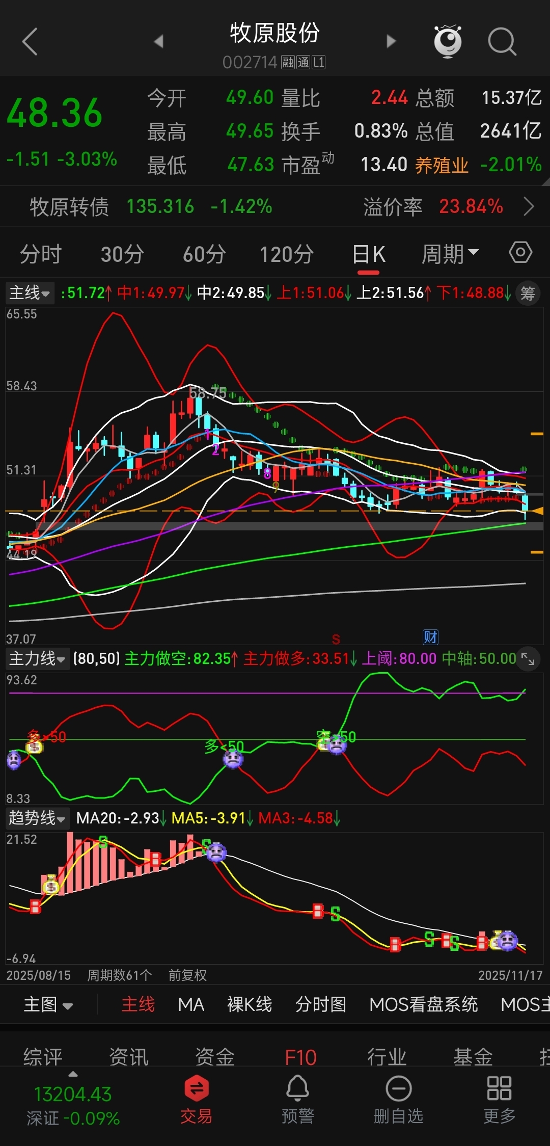 都炒名字去吧,主力早跑了。日线向下开口,主力做空线突破天花板持续高位运行,趋势线