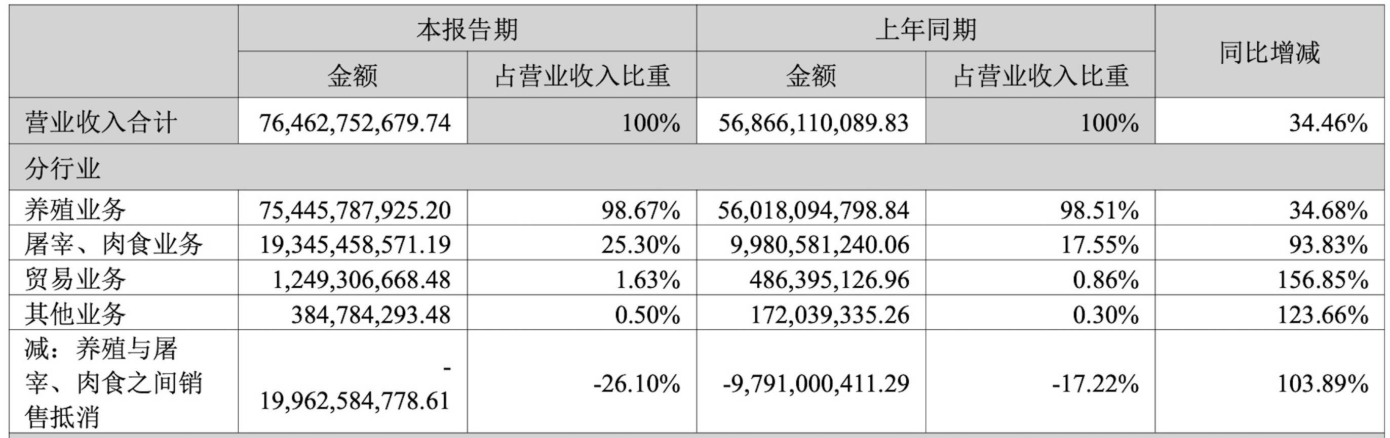 中报数据显示,今年上半年,公司的屠宰、生肉业务营收占总营收的25.3%,同比增长93.83%,这一业务板块正在成为公司收入结构中的重要组成部分。