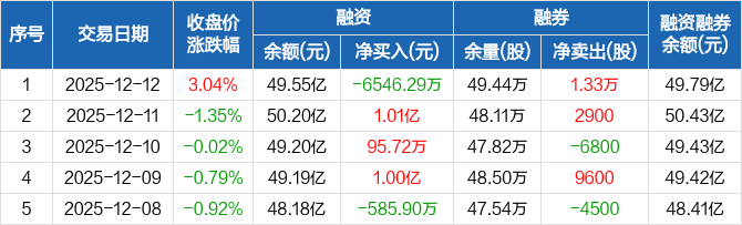 牧原股份:融资净偿还6546.29万元,融资余额49.55亿元(12-12)