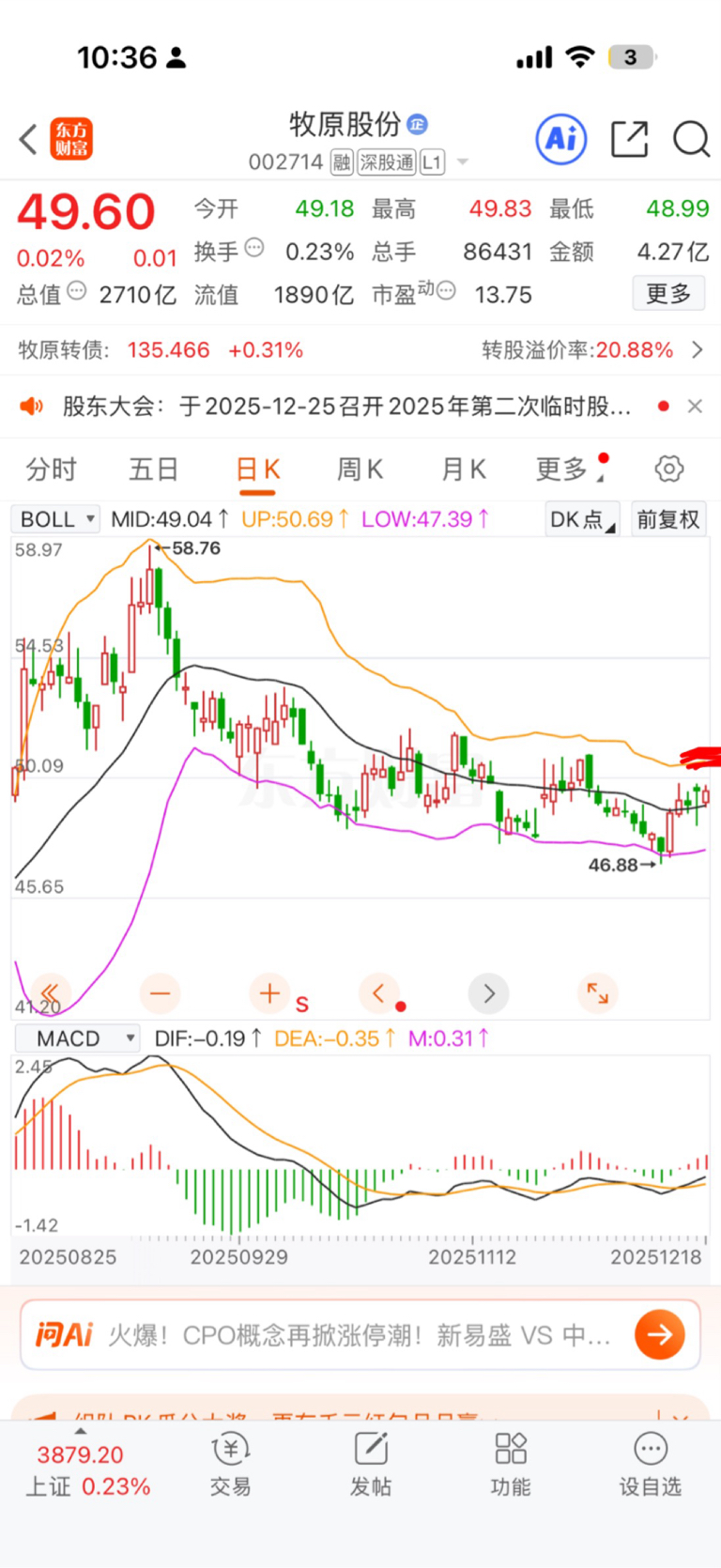 $牧原股份(SZ002714)$ 如果49.71买2手,50.71卖2手,相当于挣了不到200块钱,有必要做个T吗?