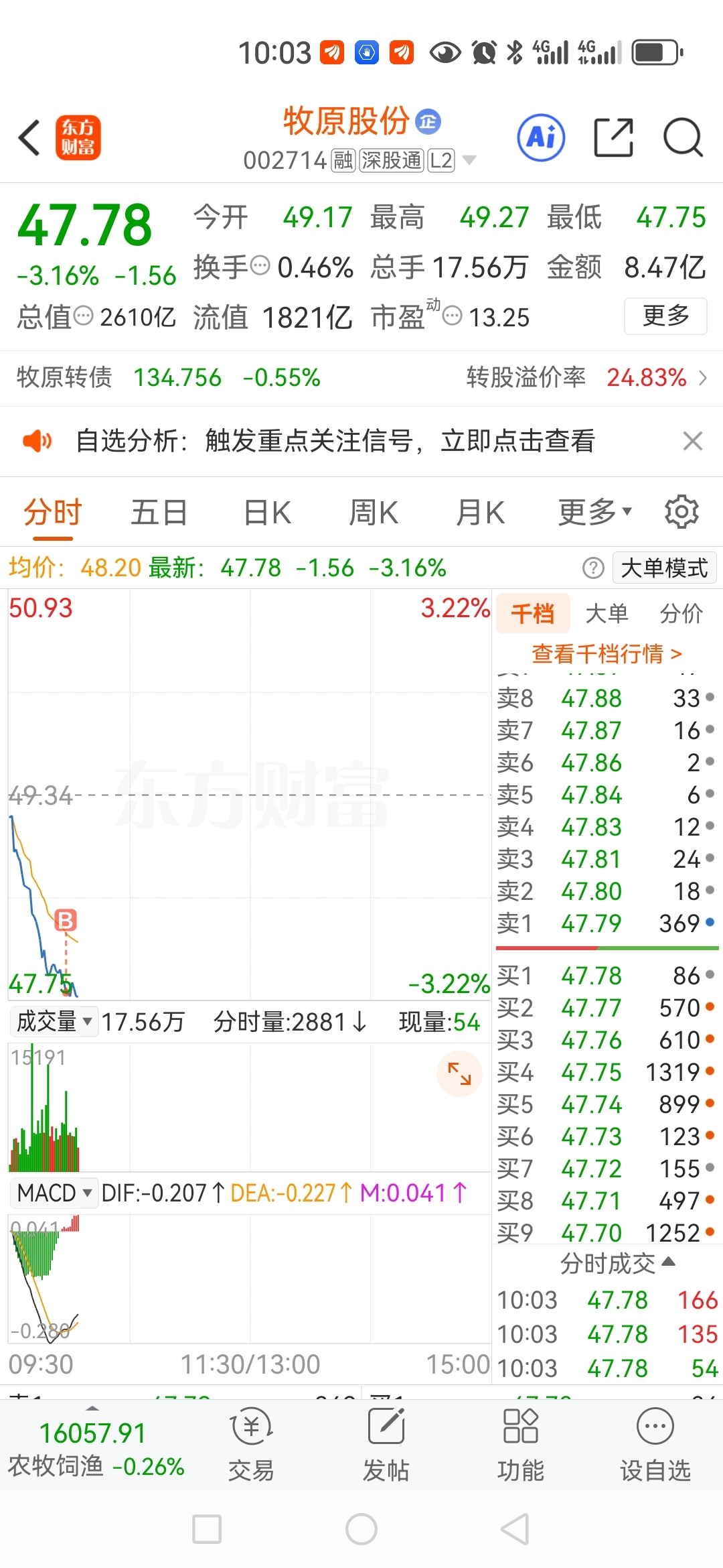 $牧原股份(SZ002714)$ 使劲往下砸,47已挂好买单