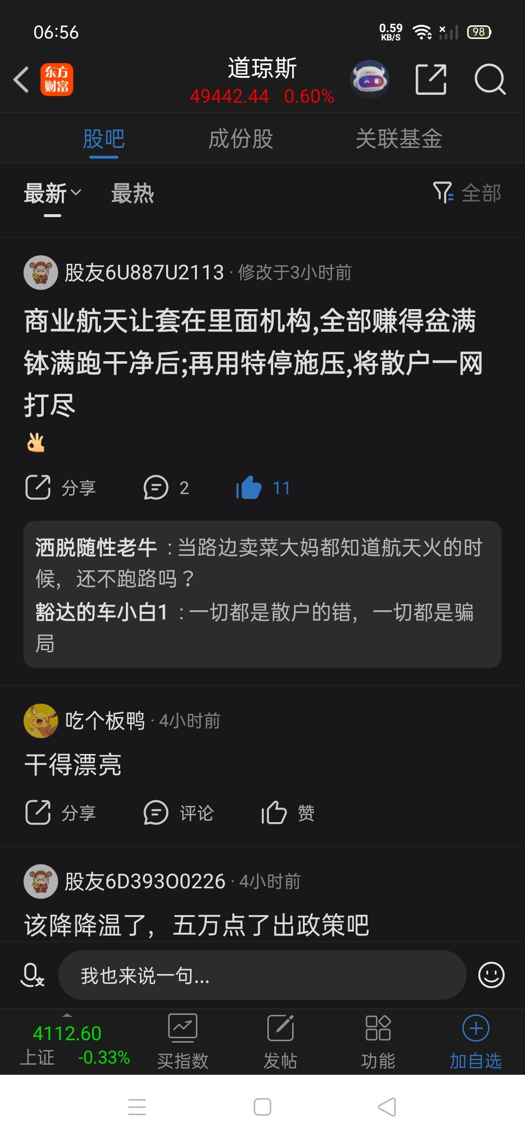 温馨提示: 1.根据《证券法》规定,禁止编造、传播虚假信息或者误导性信息,扰乱证券市场;2.用户在本社区发表的所有资料、言论等仅代表个人观点,与本网站立场无关,不对您构成任何投资建议。用户应基于自己的独立判断,自行决定证券投资并承担相应风险。《东方财富社区管理规定》