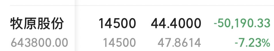 $牧原股份(SZ002714)$ 成本还是47.9。之前仓位太重了