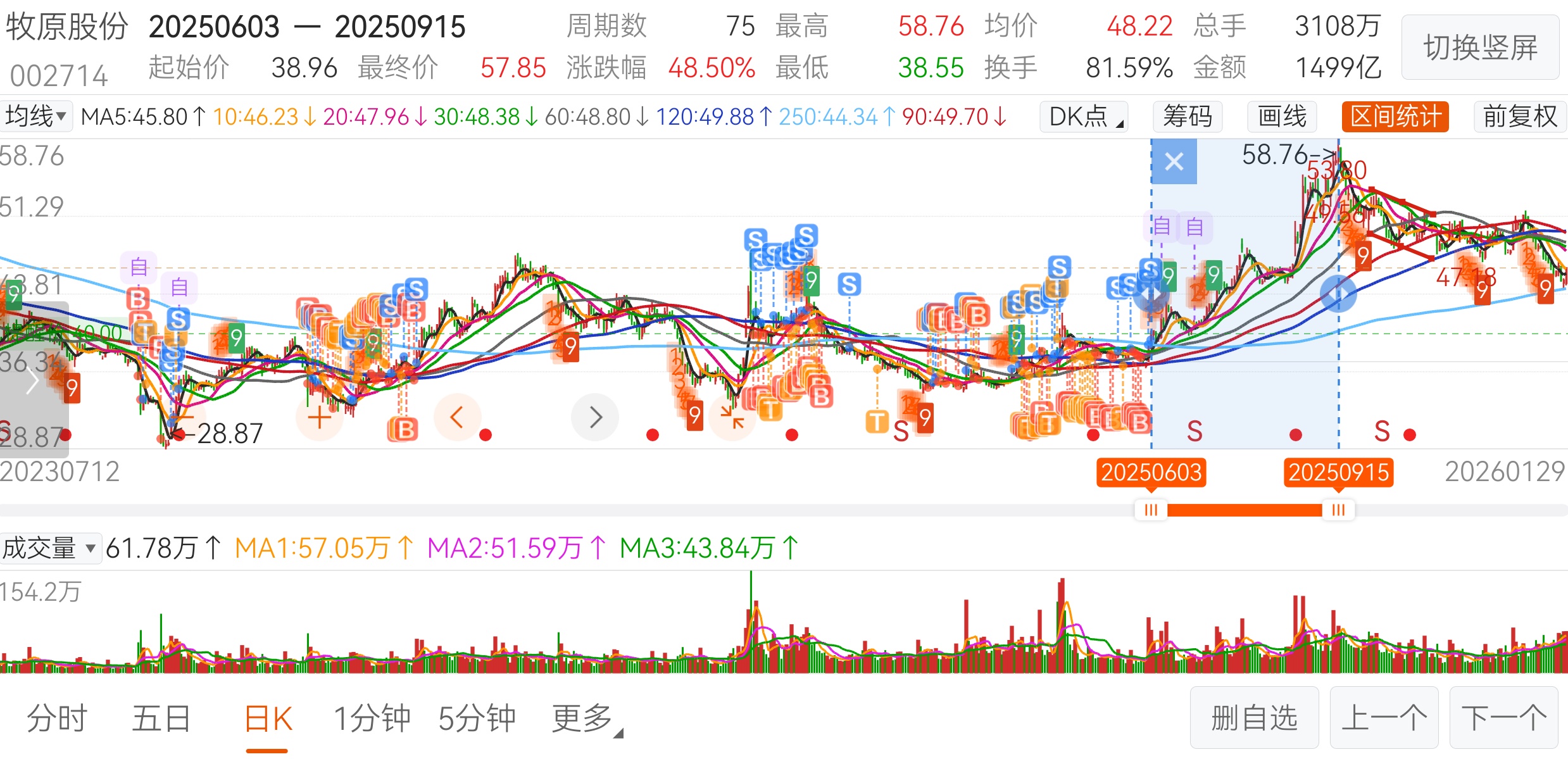 阔别半年,从山那头,来到山这头。当初说等回踩年线再接回的,结果一去不回头。现在是回踩年线了,想套我吗?我比那时有钱,股市里没亏,存款还增加了。$牧原股份(SZ002714)$