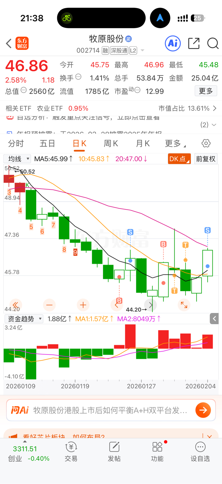 $牧原股份(SZ002714)$ 我卖了,所以明天低开,就这么简单